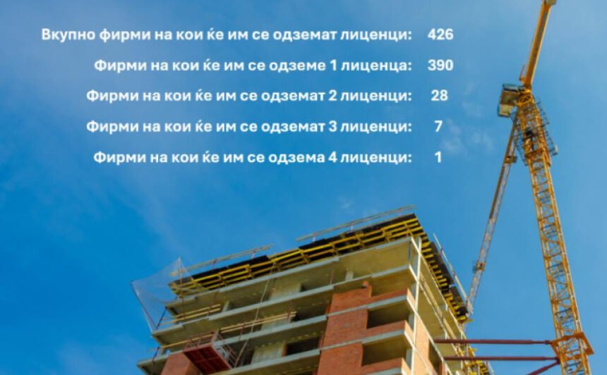 Иако на списокот на фирми на коишто ќе им се одземат лиценци за градежно работење и урбанистичко планирање што го објави Министерството за транспорт и врски има 479 фирми, всушност лиценци ќе им се одземат на 426 фирми, бидејќи на списокот има некои фирми што се повторуваат, а други на коишто им се одземаат по неколку лиценци.