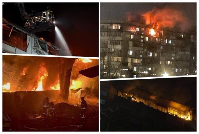 По нападите избувнале пожари во станбени блокови. Десетици луѓе беа евакуирани.