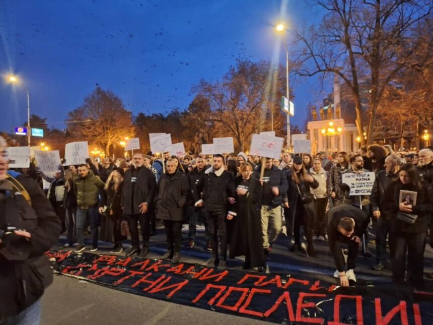 Семејството на прегазената Фросина Кулакова со транспарент „Ние сме гласот на Фросина, валкани пари- смртни последици“ го предводеше денешниот протест на кој стотици граѓани бараа правда за загинатите во сообраќајни несреќи како и ригорозни казни за прекршителите на сообраќајните правила кои предизвикале смртни последици.Протестот започна од „Партизански одреди“ каде што загина Фросина на 29 јануари, откако беше прегазена додека минувала на пешачки, од автомобилот на 20-годишниот возач, кој според официјалните информации, немал возачка дозвола, имал алкохол во себе и поминал на црвено.