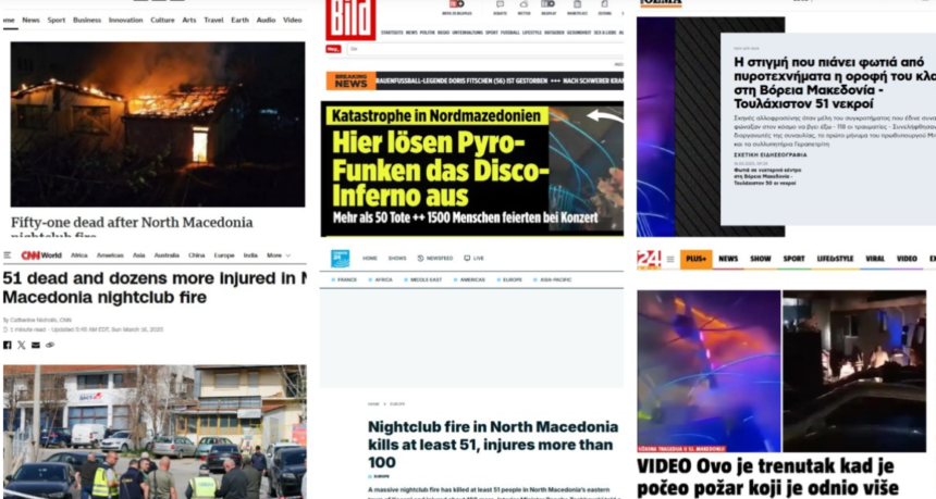 Сите познати светски медиуми, меѓу кои и Би-Би-Си, Си-Ен-Ен, германски Билд, како и сите медиуми од Балканот, известуваа утрово за трагедијата која се случи во Кочани, при што 51 лице ги загубија животите.