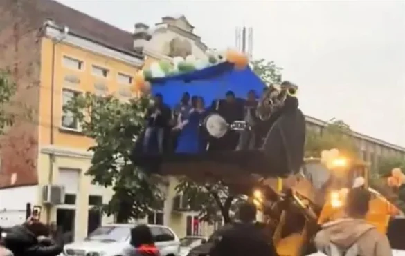 Спектакл: Бугарска матурантка пристигна на забавата качена на – багер (ВИДЕО)