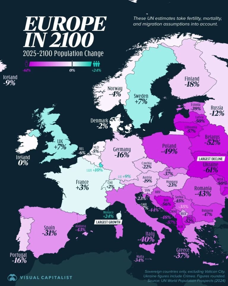 Перспективи на светското население 2024“, документ на Обединетите нации, предвидува дека Македонија во 2100 година ќе има 52 проценти помалку население од 2025 година.