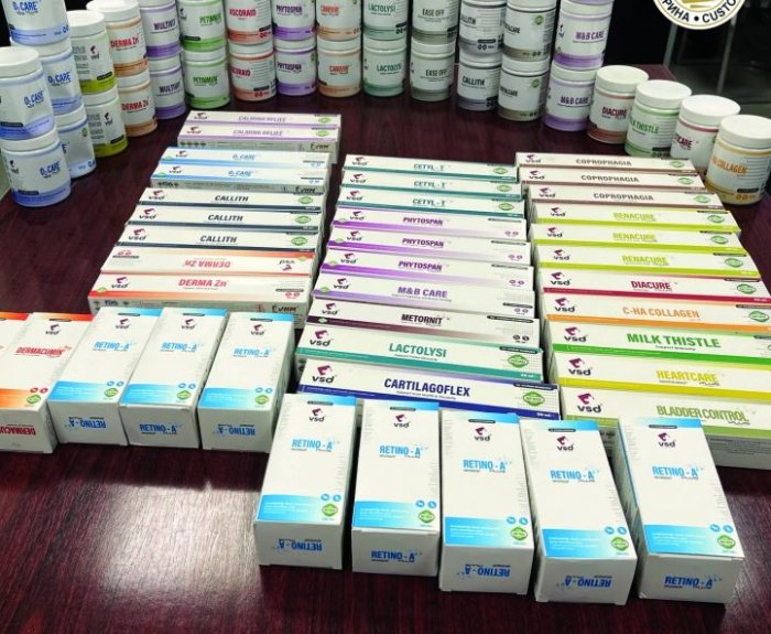 – 4,32 килограми и 1.17 литри (75 пакувања) разни суплементи за домашни миленици (Multivit, Ascoraid, Petimmun Plus, Dentalcare, O2 Care Plus, Milk Thistle, Retino – A Plus, Derma Zn, Bladdercontrol и други), се откриени од мобилен царински тим при контрола на автомобил со македонски регистарски таблички на влез во државата на граничен премин Блаце.