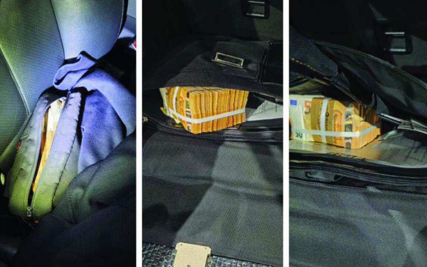 Поради сомневање во изјавата која ја дал патникот дека нема што да пријави и дека со себе носи помалку од 1.000 евра, царинските инспектори извршиле детална контрола на возилото и притоа на совозачкото седиште под машка јакна во црна рачна торбичка се пронајдени 44.000 евра, а во багажниот простор на возилото во црна кожна ташна биле пронајдени дополнителни 50.000 евра или вкупно 94.000 евра за кои лицето не поседувало документ за потекло на парите и не ги пријавило.