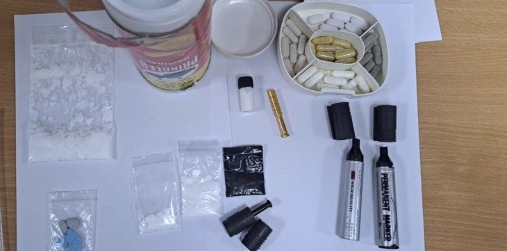 – Вчера околу 19 часот на граничен премин „Табановце“, на влез во државата, полициски службеници ги лишиле од слобода О.Ј., 32-годишно лице од Унгарија и А.Б., 37-годишно лице од Србија. При гранична проверка и контрола во возилото „тојота“ со унгарска национална ознака, што го управувал О.Ј, а сопатници биле А.Б. и уште едно лице од Унгарија, во личниот багаж на О.Ј. биле пронајдени и одземени неколку пакувања со бела прашкаста материја, едно шише со бела прашкаста материја и една кутија со 31 капсула. Додека, во личниот багаж на сопатникот А.Б. биле пронајдени неколку пакувања со бела прашкаста материја и таблети, појаснуваат од МВР.