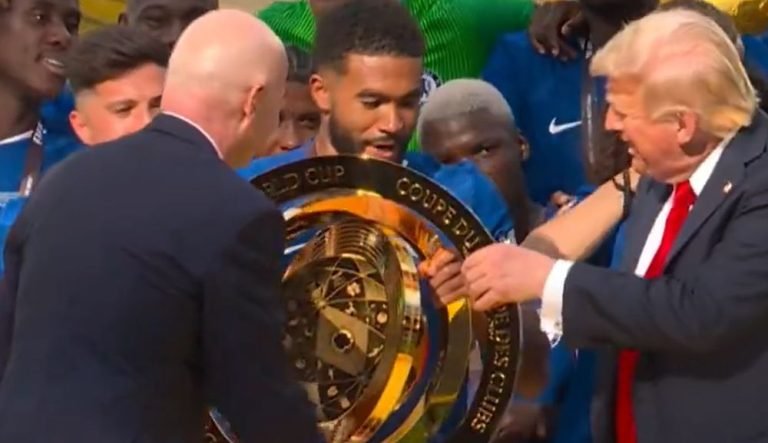 Фудбалерите на Челзи се чудеа зошто американскиот претседател Донал Трамп остана со нив кога требаше да го креваат пехарот. Капитенот Рис Џејмс дури и му се обрати, а тој реши да остане и да слави со нив.
