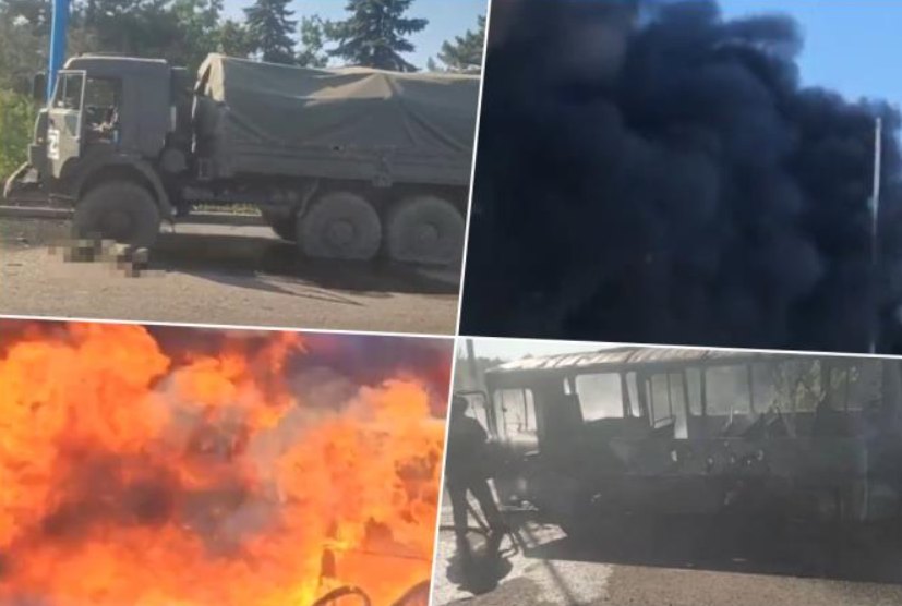 A Russian military convoy was hit. The strike was carried out using HIMARS cluster munitions.