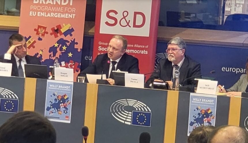 Македонија е во бизарна ситуација на т.н. самонаметнато вето, порача Филипче од Брисел. На конференција „Започнување на Програмата на С&Д ‘Вили Брант’ за проширување на ЕУ“ лидерот на опозицијата Филипче, порача, дека македонската влада е пример за недостиг на стратегија во евроинтеграциите. Побара и помош од европските социјалдемократи, да помогнат во процесот на проширување на ЕУ.
