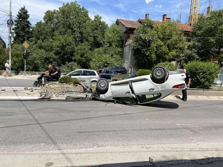 (ФОТО) Возило заврши на кров, а двајца на хирургија