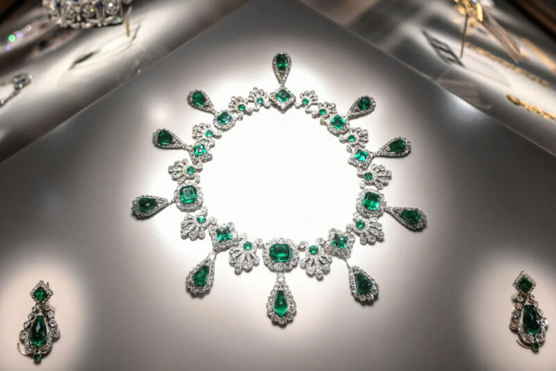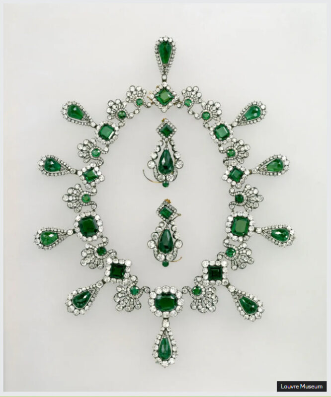 Од колекцијата на Мари-Луиз, сопруга на Наполеон Бонапарта: ѓердан и пар обетки со смарагди.