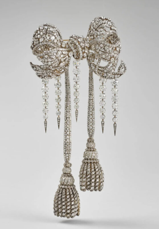Од колекцијата на царицата Евгенија, сопруга на Наполеон III: два броша (од кои едниот е реликвијар), декоративен јазол за корсет и тиара.