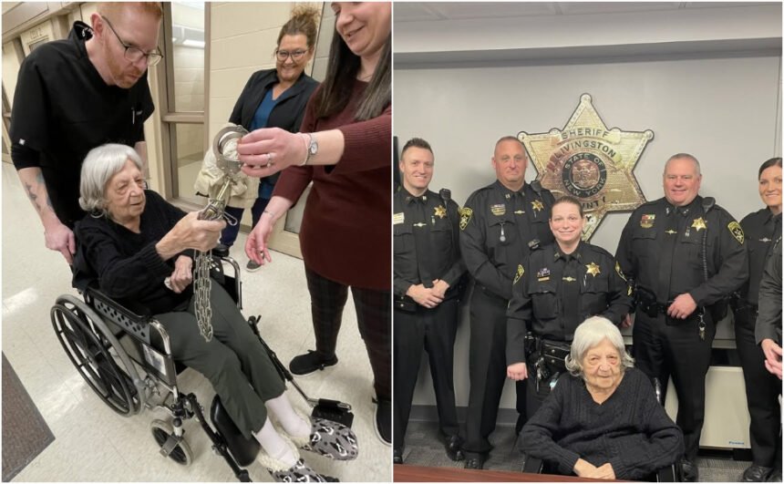 Лорета, жителка на старечкиот дом „Авон“ во Џенесио, конечно си ја исполни долгогодишната желба, благодарение на полициските службеници кои ѝ овозможија да помине некое време „зад решетки“.