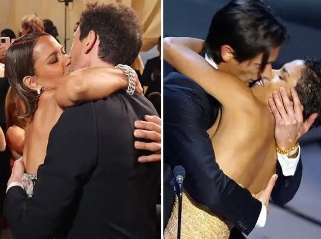 Актерката Хали Бери му пријде на актерот Адриен Броди на црвениот тепих на Оскарите и страсно го бакна пред сите.