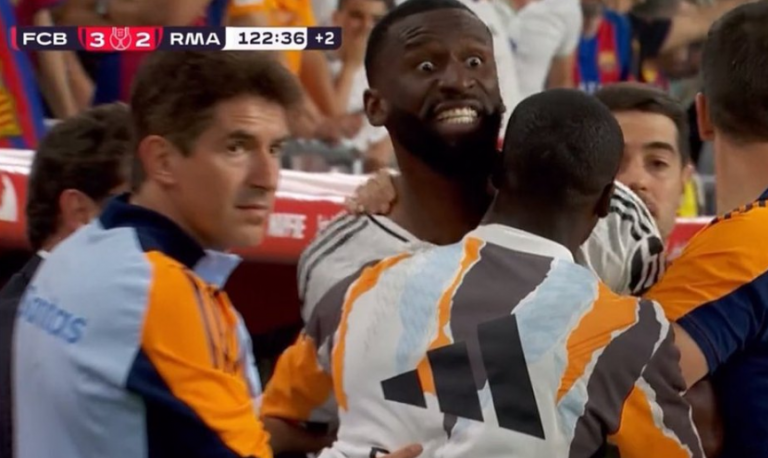 Финалето не мина без тензии – во самиот финиш, Антонио Рудигер, кој беше на клупата, доби директен црвен картон поради фрлање мраз кон главниот судија Де Бургос. Инцидентот предизвика дополнителен хаос, при што неколку членови од клупата на Реал мораа да го задржат Рудигер за да спречат физичка пресметка со арбитарот.
