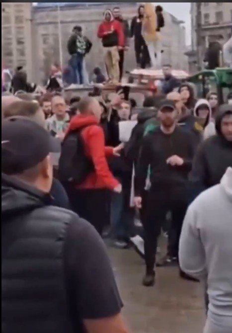 „Kaj se bijete medju sebe“ извикува девојка откако двајца инфилтрирани Хрвати им помагаат на српските опозиционери на протестот во Белград.