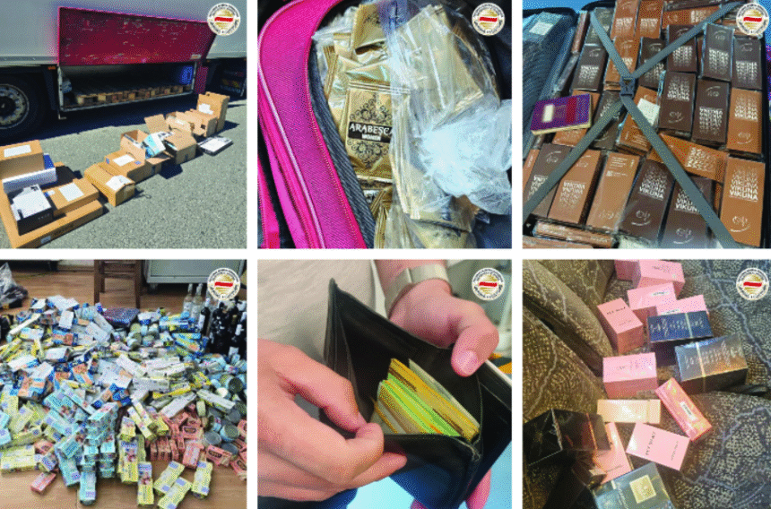 40 штеки цигари, 5 грама марихуана, 2.700 ќесички суплементи, 17 парфеми, 7.500 евра, 600 пакувања со вештачки трепки, 35 литри алкохолни пијалоци и разна друга стока е запленета во текот на изминатите денови, во случаи на откриени прекршочни дела, при што против сторителите е спроведена соодветна постапка.