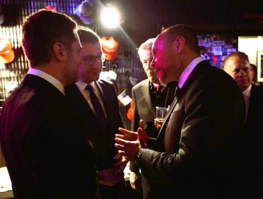 На свеченоста “Гласови на слободата“ организирана од компаниите ,,Трамп Медиа” и Рамбл, која се одржа по инаугурацијата, остварив средба со Ден Бонџино, еден од најблиските соработници на Претседателот Трамп и најпознат политички десничарски коментатор, напиша Мицкоски.