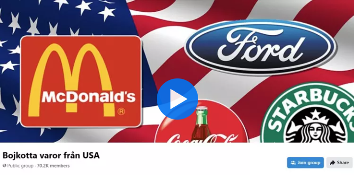 Од Швеѓаните се бара да не купуваат производи и услуги од некои од водечките американски брендови, вклучувајќи ги Мекдоналдс, Кока-Кола, Најк, Левис, Нетфликс, Гугл и Ербнб.