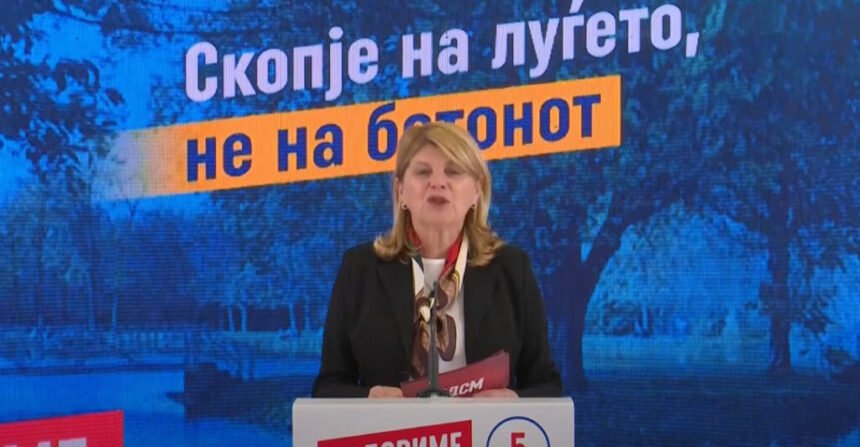 „Зелените површини се белите дробови на градот. Скопје мора повторно да дише. Затоа ќе вложуваме во паркови, јавни простори и чиста животна средина“, рече таа.