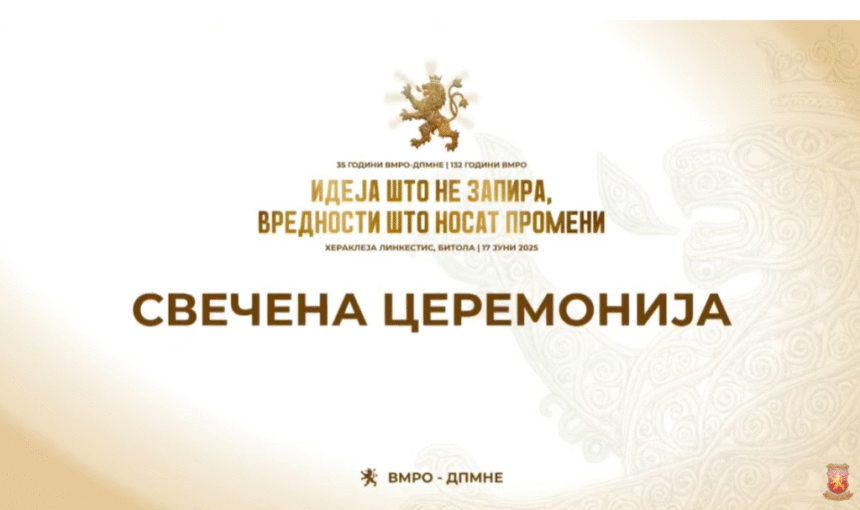 Вечерва по повод 35 години од формирањето на ВМРО-ДПМНЕ, во Битола се одржува прослава под насловот “Идеја што не запира, вредности што носат промени”.