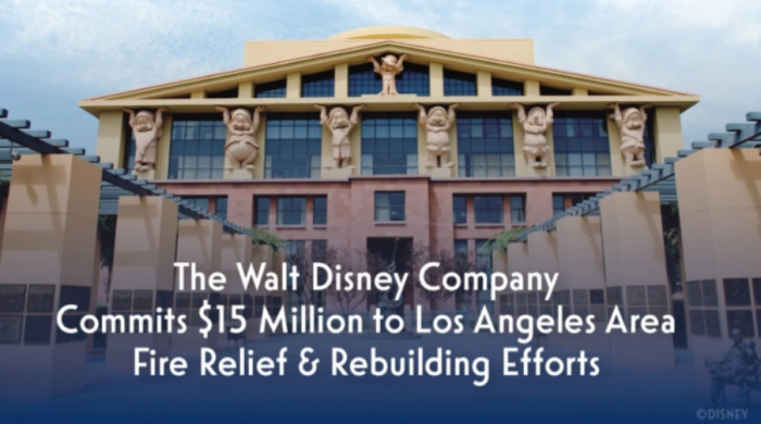 Филмската компанија „Волт Дизни“, соопшти дека ќе донира 15 милиони долари помош за настраданито од катастрафалните пожари во Лос Анџелес и за обнова на локалната инфраструктура, а за слична намена планирани се пет милиони долари од Националната фудбалска лига на САД (НФЛ).