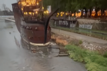 Видео: Белгиец пловеше со гума во Вардар