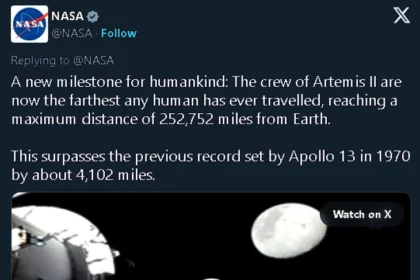 Екипажот на „Артемис II“ го сруши рекордот за најдалечното човечко патување од Земјата, надминувајќи го претходниот рекорд поставен од мисијата…