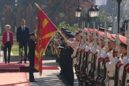 Премиерот Христијан Мицкоски ја пречека пред Владата претседателката на Европската комисија Урсула…