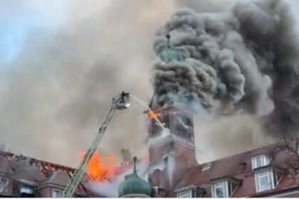 (ВИДЕО) Пожар во Минхен: Гори зграда, пламените јазици проголтуваат се пред себе