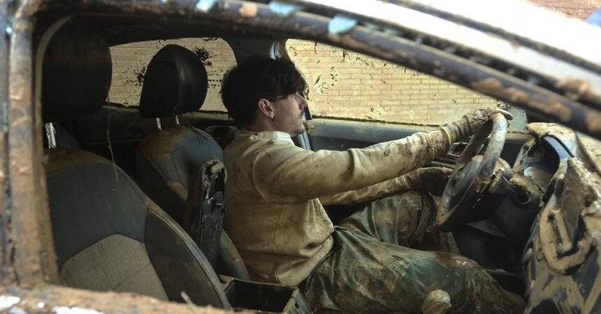 Видеото кое привлече милиони прегледи на социјалните мрежи покажува како овој класичен Мерцедес се стартува од поплавената гаража во Валенсија, само неколку дена откако беше потопен за време на катастрофалните поплави.