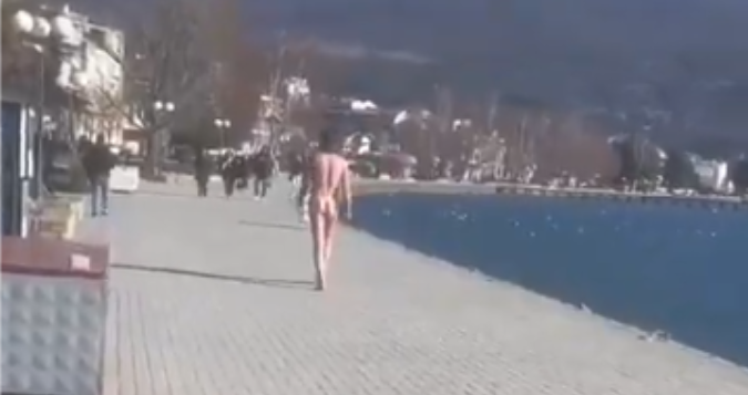 Сосема гол маж вчера се прошета по кејот на Охридското Езеро сред Охрид ги шокираше граѓаните кои се нашле таму.