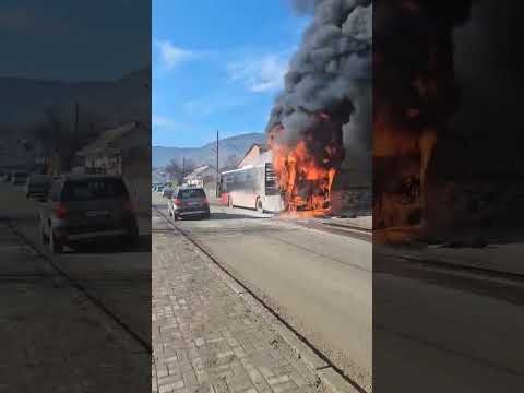 Возач на автобус на ЈСП Скопје е хоспитализиран поради вдишување чад, откако неговото возило се запалило во движење и целосно изгорело за само неколку минути.