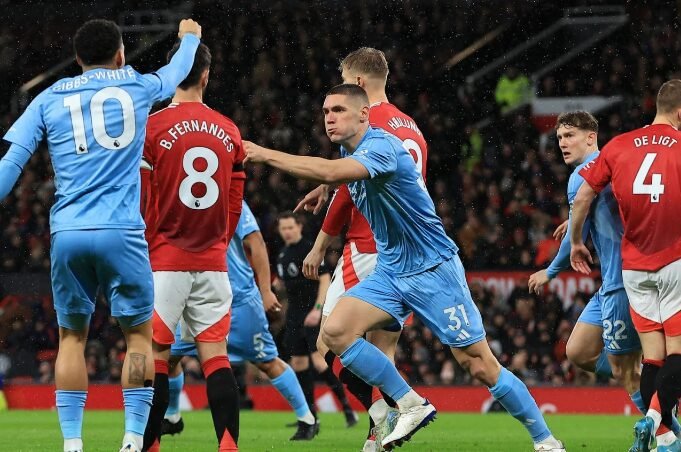 Фудбалерите на Нотингем Форест го совладаа Манчестер јунајтед на „Олд Трафорд“ со 3:2 во последниот натпревар од саботната програма, во рамките на 15. коло на Премиер лигата.