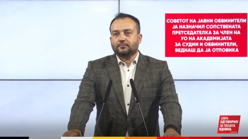 Лефков: Советот на јавни обвинители ја назначил сопствената претседателка за член на УО на Академијата за судии и обвинители, веднаш да ја отповика