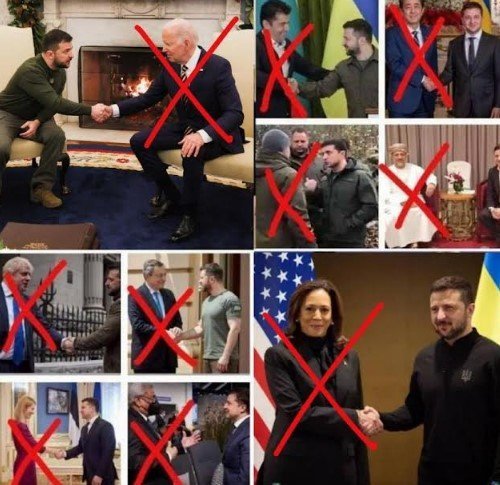 На социјалните мрежи е објавена фотографија на голем број лидери со кои се сретнал Зеленски а кои потоа губат на избори. Прва е се разбира Харис но и Бајден, Борис Џонсон и Кирил Петков.