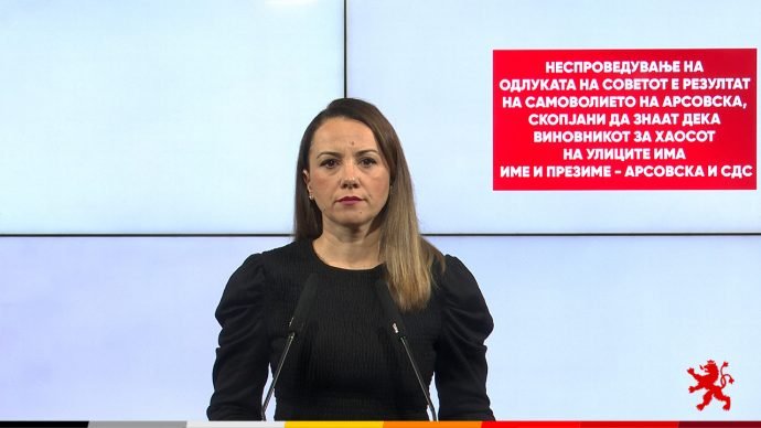 Скопјани да знаат која е адресата на виновникот за хаосот на улиците – Данела Арсовска и СДС, додаде таа.