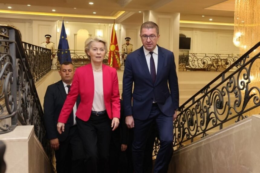Остануваме посветени на патот кон полноправно членство во ЕУ, но очекуваме ЕУ да ги уважи легитимните барања на граѓаните дека во иднина нема да се соочуваме со барања кои се во спротивност на вредностите на ЕУ, рече премиерот Христијан Мицкоски во своето денешно излагање на заедничката прес конференција со претседателката на Европската комисија, Урсула фон Дер Лајен.