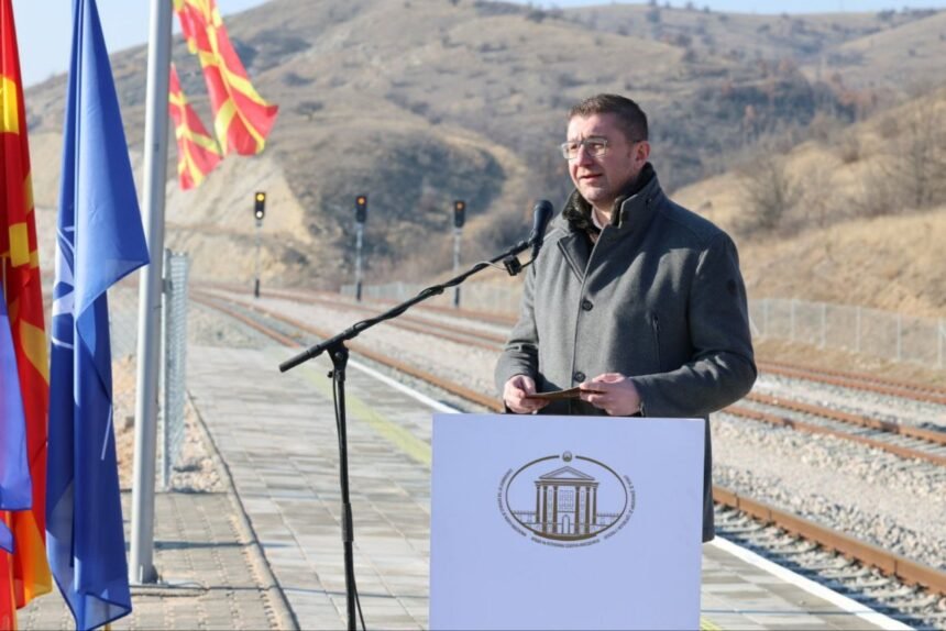 Trending > Blog > МАКЕДОНИЈА > Мицкоски: Пуштена е во употреба модерна железничка пруга Куманово – Бељаковце