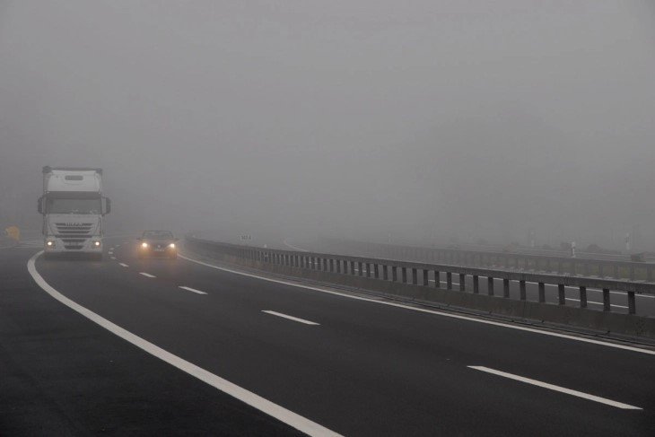 Намалена видливост поради магла од 100 до150 метри има во Штип и на патниот правец Велес-Катланово. Од АМСМ информираат дека сообраќајот на државните патишта се одвива во зимски услови, по наместа влажни коловози.