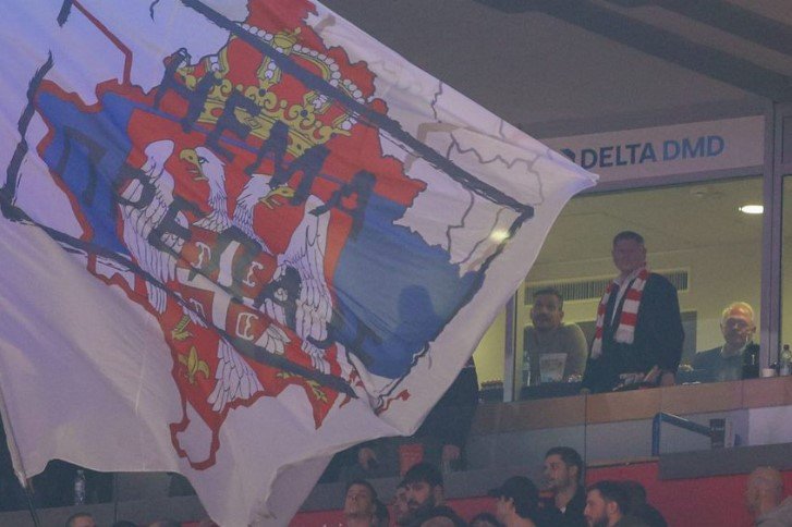 Популарните „Делии“ се доближија до ложата, бараа да си замине. Кога тој остана да го следи натпреварот фановите пред „фаца“ му мафтаа со знаме „нема предаје“ за Косово.