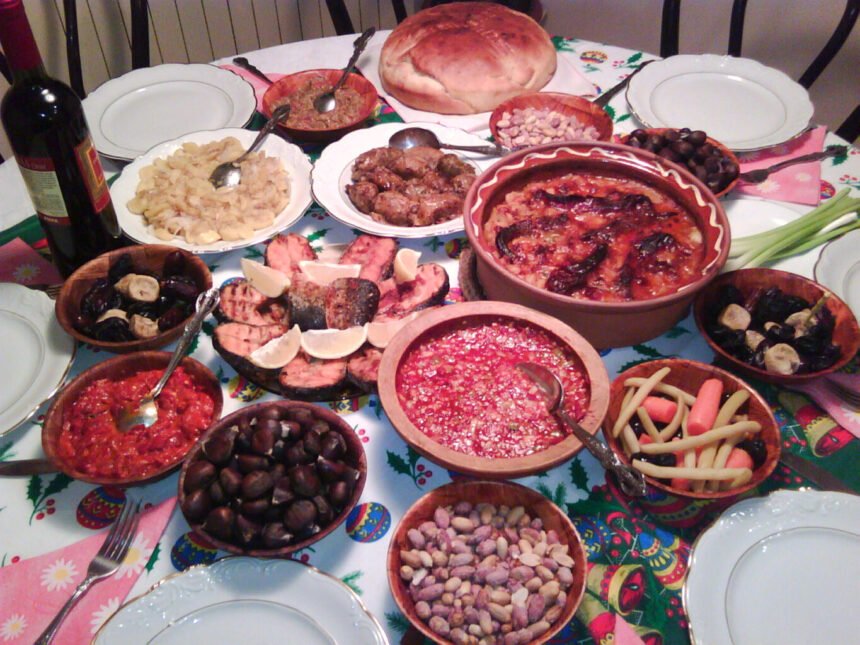 Стар обичај е на Божиќ на вашата трпеза да има најмалку седум јадења, бидејќи тие симболизираат среќа и благосостојба, односно дека ќе имате што да јадете цела година.