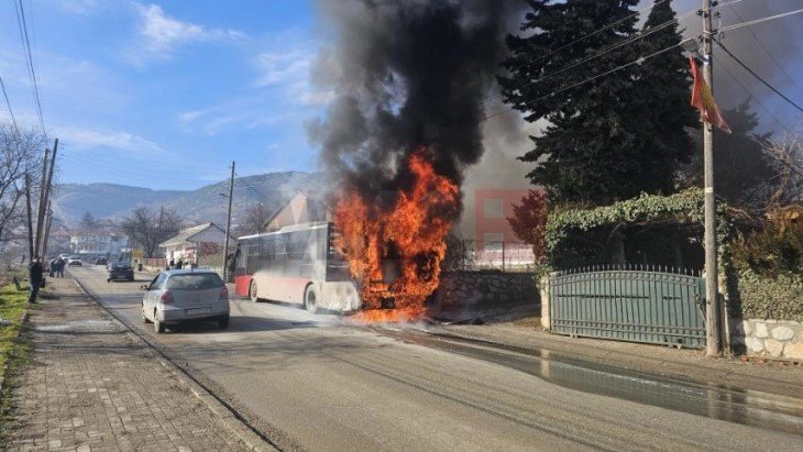 Целосно изгоре автобус на ЈСП, кој се запали кај Сопиште. Во него се превезувале десетина патници.