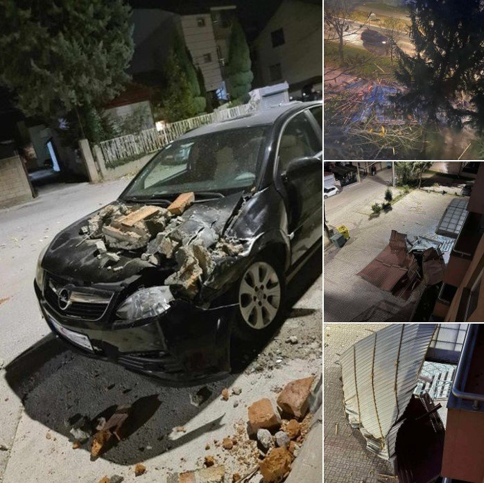 – паднат кров од две згради на ул. „Нико Фундали“ кај „Жито маркет“ каде има настаната штета на неколку возила;