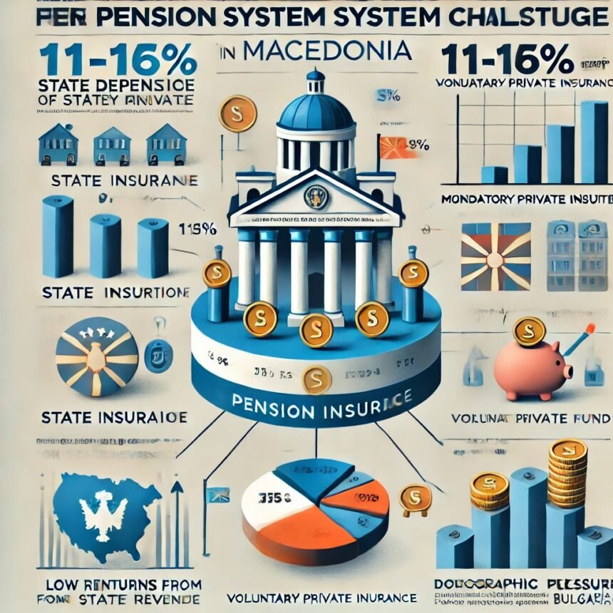• Демографски притисок: Стареењето на населението и намалувањето на соодносот меѓу вработените и пензионерите го зголемуваат товарот врз пензискиот систем. Во 2021 година, соодносот изнесуваше приближно 1,2:1, што е далеку од идеалниот.