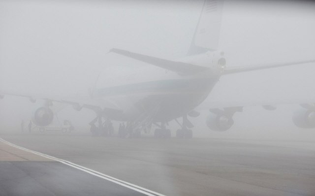 Видливоста е 200 метри, и поради тоа авионскиот сообраќај е во прекин.