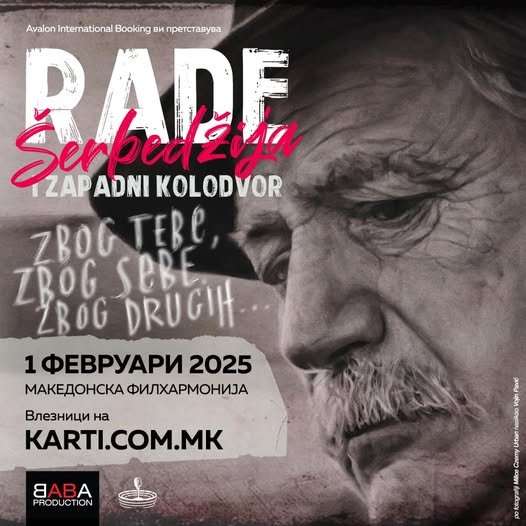 На 1 февруари 2025, еден од најголемите уметници не само на овие простори, туку и ширум светот, Раде Шербеџија, заедно со својот оркестар ,,Западни колодвор” ја носи својата магија во Скопје на еден ексклузивен концерт во Македонска филхармонија!