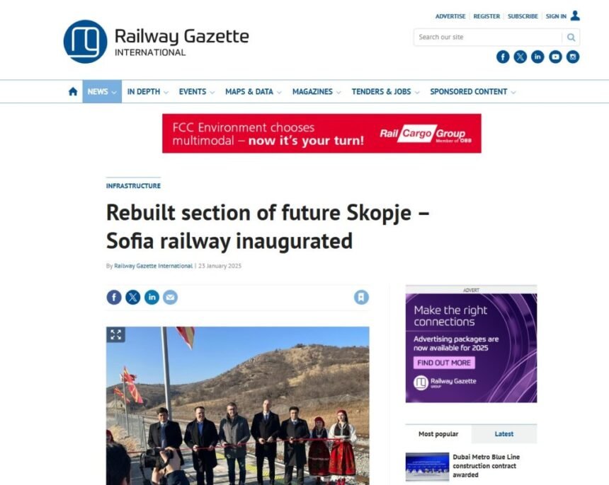 Британското списание Railway Gazette, кое е специјализирано за вести од железничката индустрија, објави прилог за отворањето на пругата Куманово – Бељаковце, која е прв дел од долго-очекуваната пруга до Бугарија.