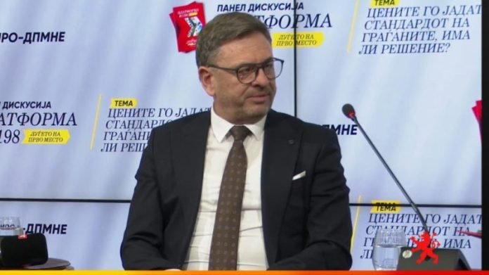 „Со започнувањето на владеењето на оваа власт, на чело со ВМРО-ДПМНЕ, ние имавме еден голем предизвик да тој галопирачки од, бран кој следуваше од претходната власт постепено да го смириме и да дадеме еден добар импулс на едно благо да речам, секако покачување на цени и една нормална инфлација која на крајот од годината изнесуваше 3,5% што е една од најниските инфлации во последниот период“, констатира Ристески.