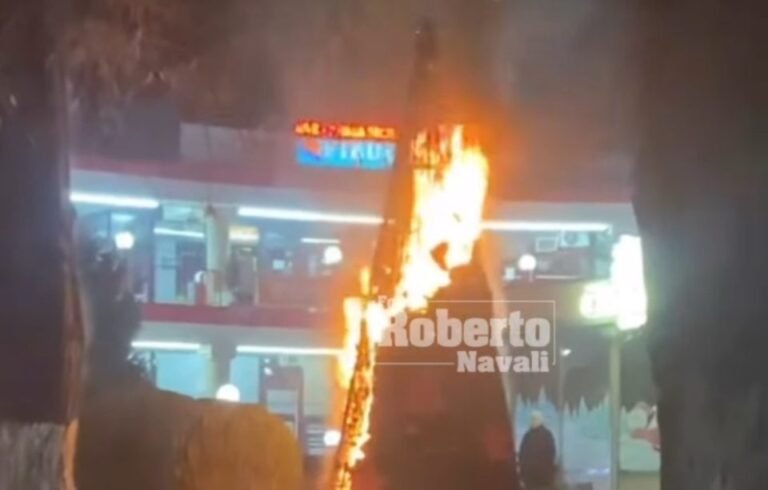 На социјалните мрежи пред малку беа објавени фотографии на кои се гледа дека гори новогодишната елка која се наоѓа во близина на фурната „Силбо“ во скопската населба Аеродром.