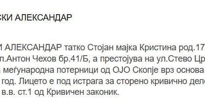 СВР Скопје – Единица за економски и компјутерски криминал поднесе кривична пријава против Н.Т.(49) од Скопје поради постоење основи на сомнение за сторени кривични дела „злоупотреба на службена положба и овластување”, „фалсификување на исправа” и „злоупотреба на лични податоци”, против правно лице со дејност во сателитска комуникација и емитување телевизиски програми од Скопје поради постоење основи на сомнение за сторени кривични дела „злоупотреба на лични податоци” и „фалсификување исправа”, против К.А.(37) од Скопје поради постоење основи на сомнение за сторено кривично дело ,,употреба на исправа со невистинита содржина” и против правно лице – регистрирано за курирски услуги од Скопје поради постоење основи на сомнение за сторено кривично дело „употреба на исправа со невистинита содржина”.